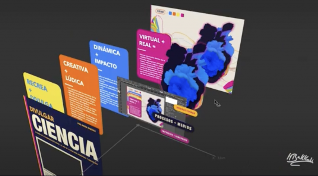 Imaginen que tenemos un material divulgativo impreso, pasarlo a una versión digital, por ejemplo un PDF o un ePub interactivo y multimedia, nos va a permitir enriquecer nuestro documento con videos, audios, interactivos, enlaces, imágenes y, todo ello, con el toque personal del creativo que lo diseña. Nos permitirá actualizar la información y también compartirla y hacer un seguimiento de su uso. Tenemos, por tanto, una herramienta potente, versátil y completa, pero podemos darle otra dimensión más, convertir nuestro PDF dinámico en una experiencia inmersiva que podamos, a su vez, compartir también a través de un simple código QR o un enlace, sin límites espaciales ni temporales. Nuestra composición física ha pasado a una versión digital y ahora adquiere otra dimensión inmersiva a través de la realidad aumentada. Cobra vida y se abre espacio en nuestro propio entorno físico. Se podrá experimentar con ella en cualquier lugar del planeta en cualquier momento, el público podrá entrar en cada una de sus capas y descubrir cada uno de sus elementos. Añadimos aquí el valor diferencial del entretenimiento. El carácter lúdico, participativo y el factor extraordinario de la sorpresa y la curiosidad.