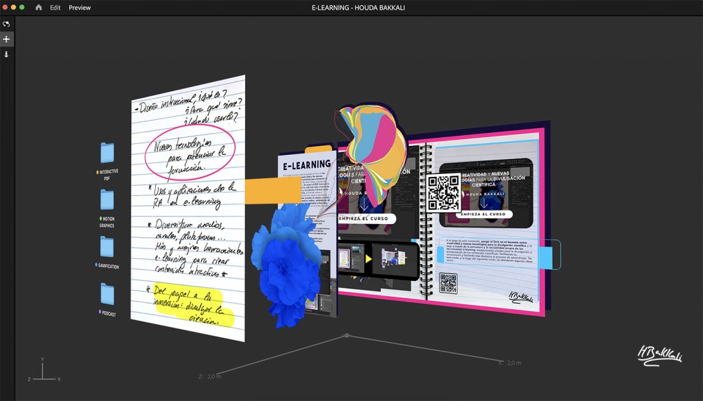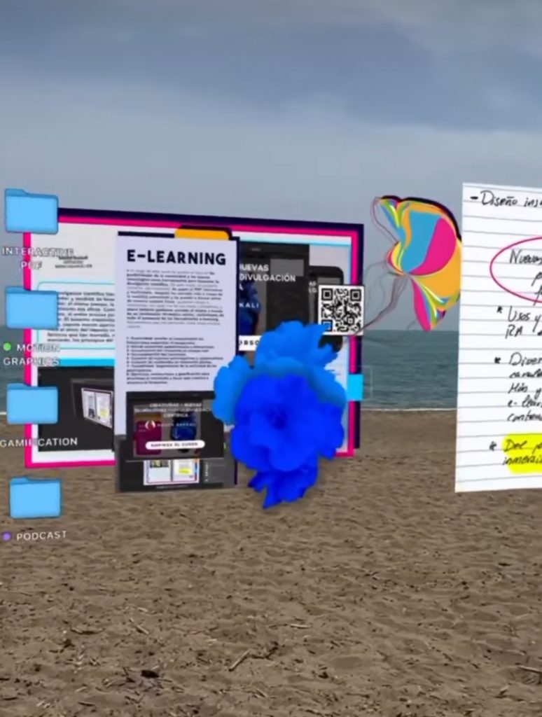 En los siguientes curso, he querido ejemplificar esa versatilidad de las nuevas tecnologías para adaptar los contenidos a diferentes contenedores, a diferentes proyectos y audiencias, respetando la idiosincrasia de cada plataforma y de cada medio y buscando una eficacia en el diseño que sea capaz de potenciar el mensaje. De este modo, el proyecto inicial sobre la creación y participación: el uso de la realidad aumentada en la divulgación científica ha ido creciendo: de papel al PDF y publicaciones interactivas, multimedia y contenidos audiovisuales. Después ha cobrado vida a través de la realidad aumentada y ahora aterriza en este contenedor formativo online, tanto en formato de cursos largos como microlearning, valiéndonos de todo el potencial de las herramientas e-learning, de su practicidad y autonomía.